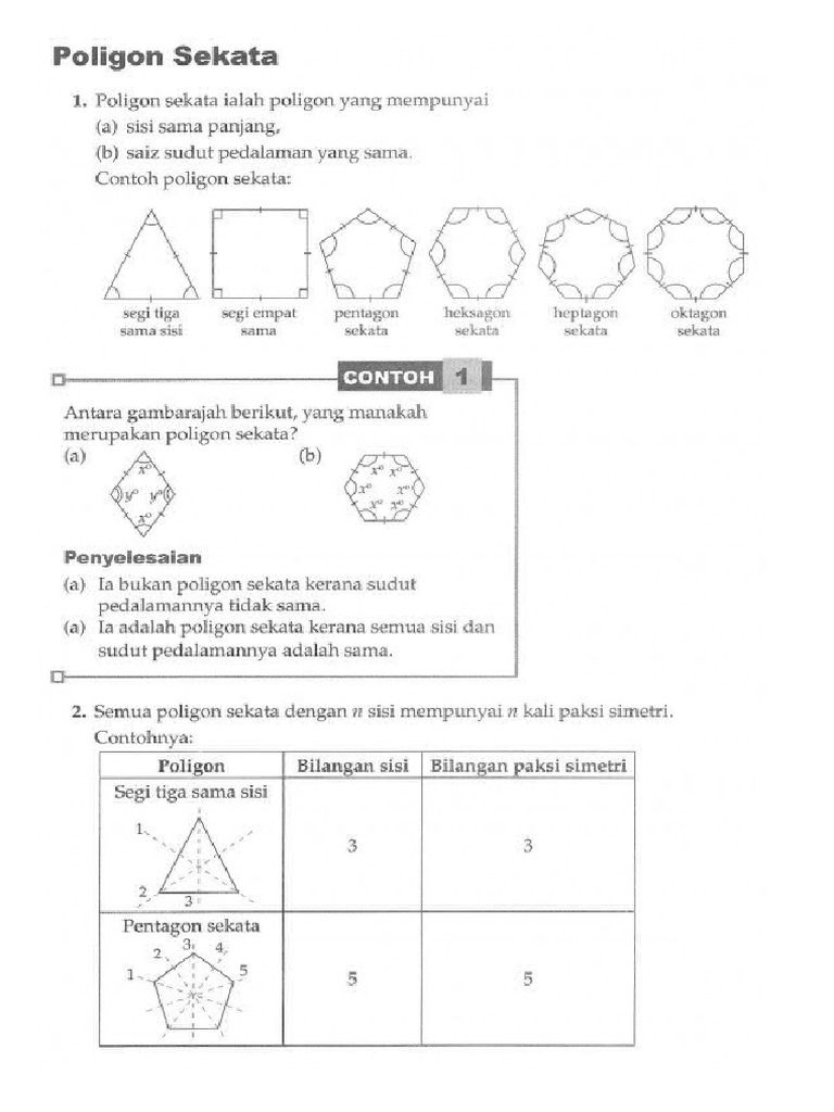 Poligon yang mempunyai sisi yang sama panjang dan sudut pedalaman yang sama besar. ❤️untuk playlist mathematics dlp form 1. 7.3.1 mengenal pasti bentuk poligon sekata bagi pentagon, heksagon. .02:43 bagaimana membina oktagon sekata menggunakan jangka lukis, diberi panjang sisi oktagon tersebut? M 2 nanogon sekata bilangan sisi 9 panjang sisi semua sisi sama panjang bilangan bucu 9 bilangan sudut 9 jumlah sudut dalaman ( n−2 ) x 180 ° 1260 ° saiz setiap sudut dalaman ( n−2.